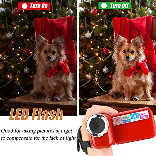 Kinderkamera-Camcorder, tragbarer 16X HD-Digitalkamera-Camcorder mit 2-Zoll-TFT-LCD-Bildschirm, für Kinder YouTube oder Vlog 16MP-Digitalkamera DV-Video-Camcorder, Kinder(rot)