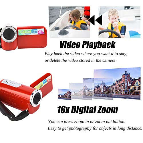 Specification: Kinderkamera-Camcorder, tragbarer 16X HD-Digitalkamera-Camcorder mit 2-Zoll-TFT-LCD-Bildschirm, für Kinder YouTube oder Vlog 16MP-Digitalkamera DV-Video-Camcorder, Kinder(rot)