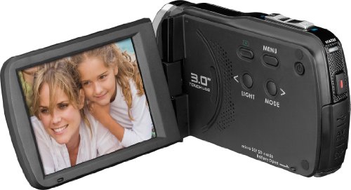 5 Megapixel Full HD Camcorder, 7,62 cm (3.0 Zoll) 4:3 TFT-LCD Touchpanel, mit zwei Kartenslots je für SD und Micro SD, 5x optischer Zoom, TV- und HDMI-Ausgang