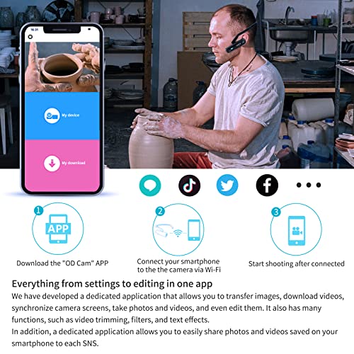 Erster Blickwinkel, APP + Fernbedienung: Aufnahmen auf den ersten Blick auf den Kopf, lassen Sie Ihre Hände und die Bilder, die Sie sehen, können in Echtzeit aufgenommen werden. Laden Sie die App “OD Cam” herunter und verwenden Sie die Fernbedienung des Armbands, um Fotos/Videos aufzunehmen, was praktisch und schnell ist